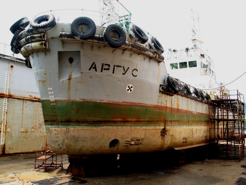 В плавдоке №4 идет доковый ремонт сборщика льяльных вод (СЛВ) «АРГУС». В настоящее время проводятся малярные работы, ремонт арматуры.