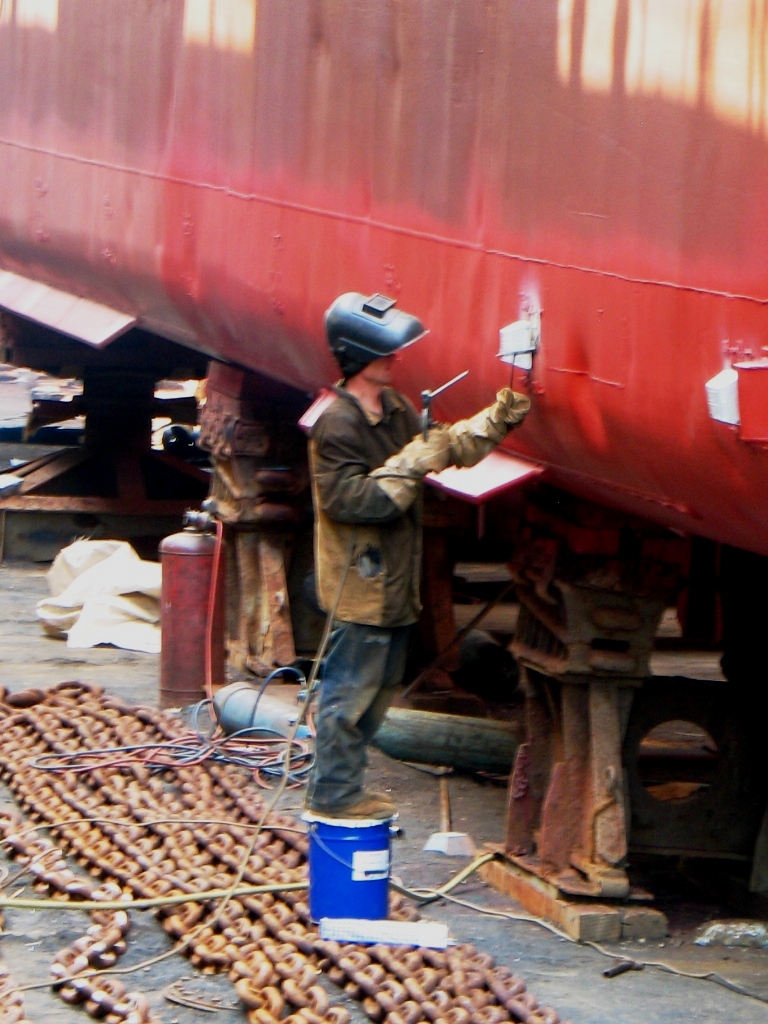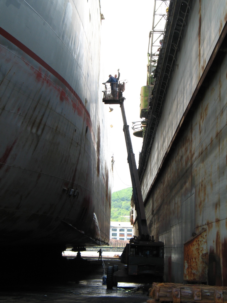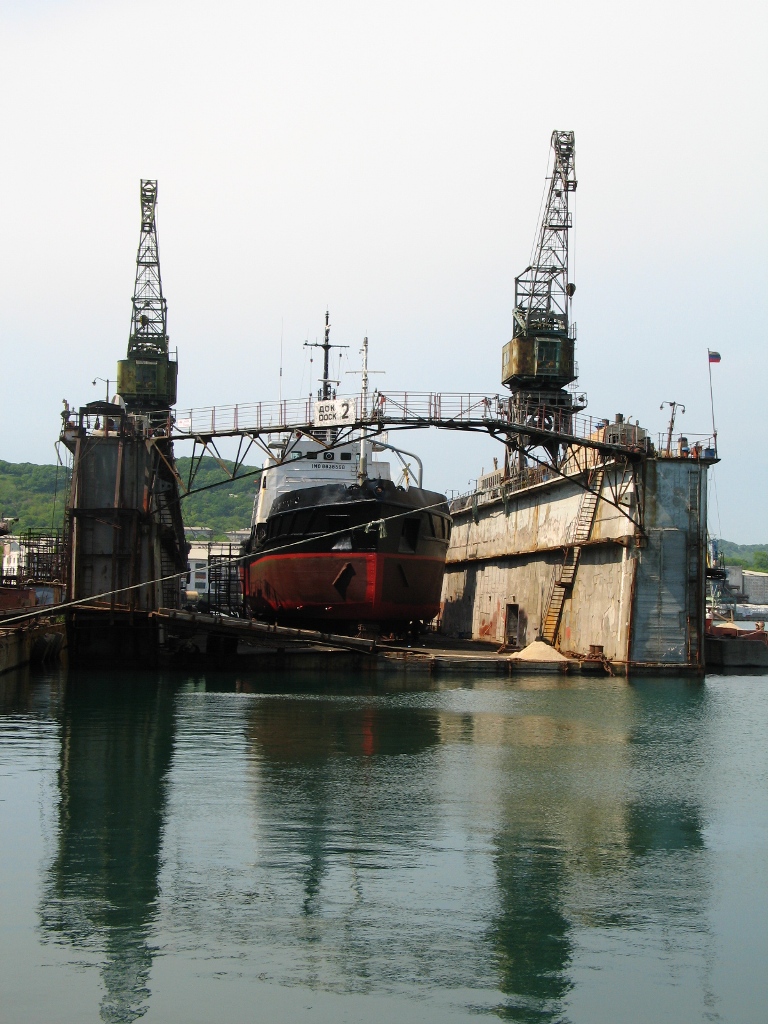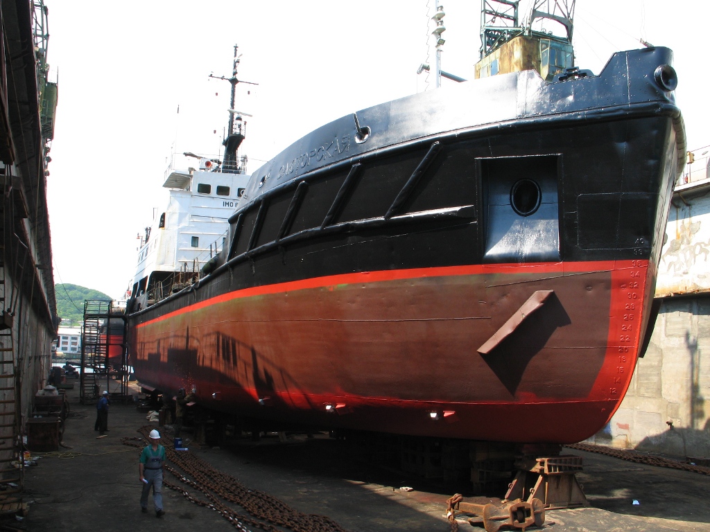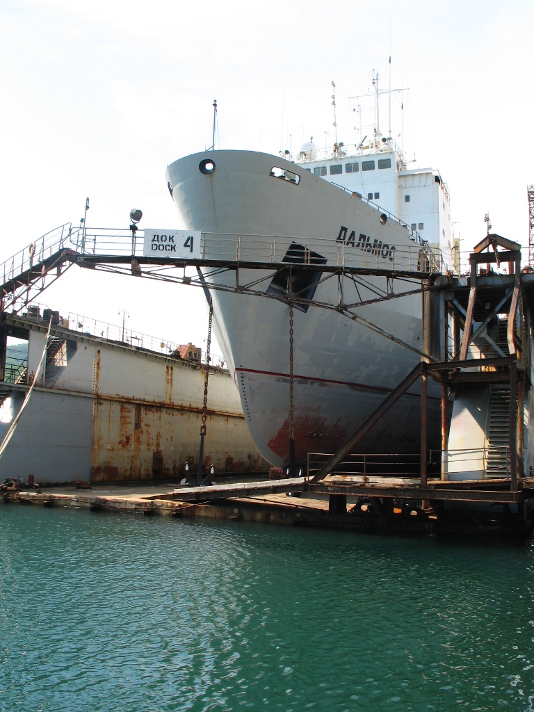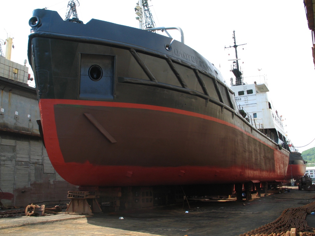В плавдок №4 поднят теплоход «ВОСТОК» (судовладелец – ООО «Горняк-2», Сахалин). На судне запланирован большой объем ремонтных работ с предъявлением на класс Регистра РФ, в том числе – очистка, покраска корпуса, ремонт балластных танков, донно-забортной арматуры, якорных цепей, ревизия рулевого устройства.