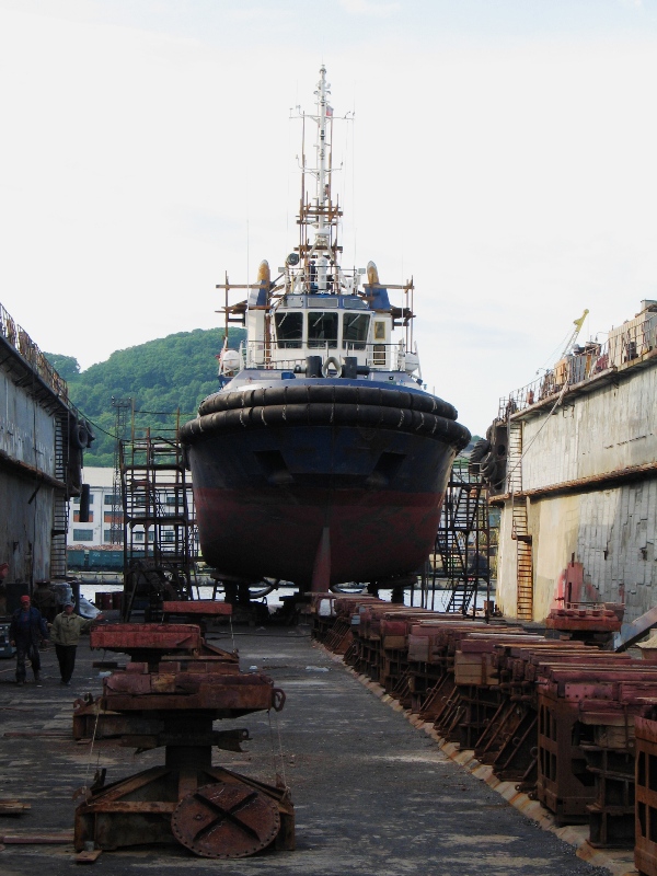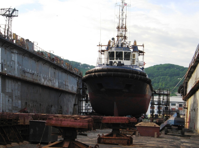 В плавдок №2 поднят буксир «ТУГНУЙ» (заказчик – АО «Дальтрансуголь»). На буксире также предстоит выполнить весь комплекс доковых работ.