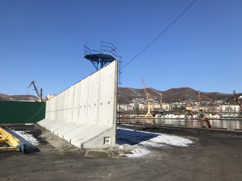 - бетонная стенка длинной 158 м и высотой 4.4 м. с тыловой части склада угля в районе причалов №№ 50-51.