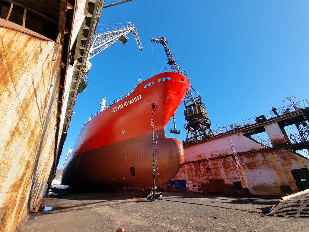 29 октября после завершения докового ремонта из плавдока №4 спущен на воду рефрижератор «ФРИО КИАНИТ».