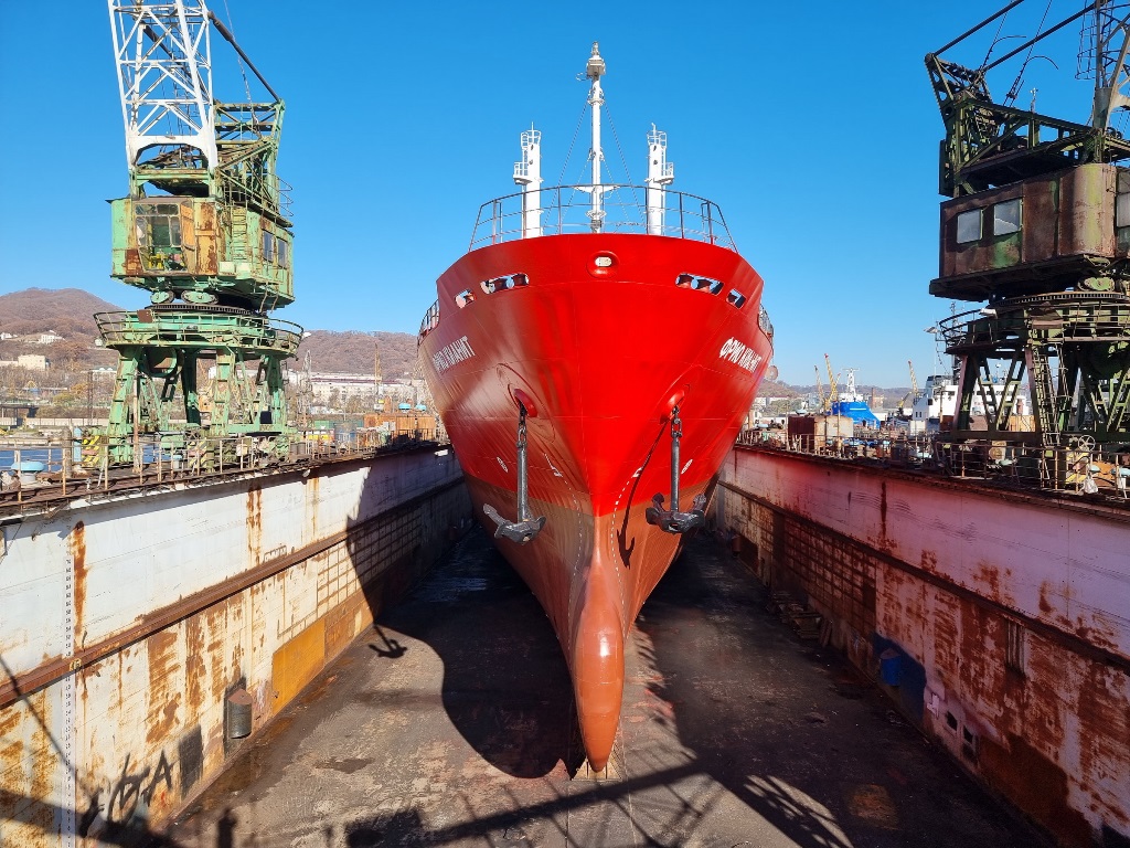 Судоремонтники «Приморского завода» выполнили полный комплекс доковых работ – очистку, покраску корпуса судна, трубопроводные работы, а также ремонт донно-забортной арматуры, винто-рулевого комплекса (ВРК), якорей, лебедок, шлюпочных устройств, теплообменных аппаратов.