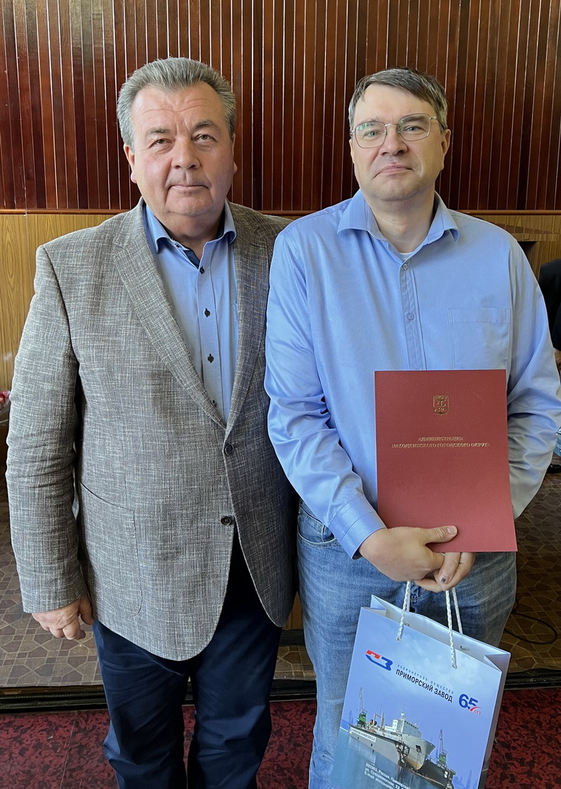 Благодарственное письмо Губернатора Приморского края было вручено директору ООО «Судоремонтный комплекс-Приморский завод» Олегу Владимировичу Латухину.