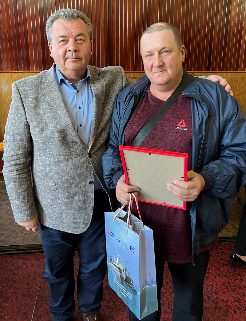 Сафронов Алексей Викторович - слесарь-судоремонтник 5 разряда слесарно-механического производства по ремонту ВРК. Стаж работы на заводе – 36 лет.