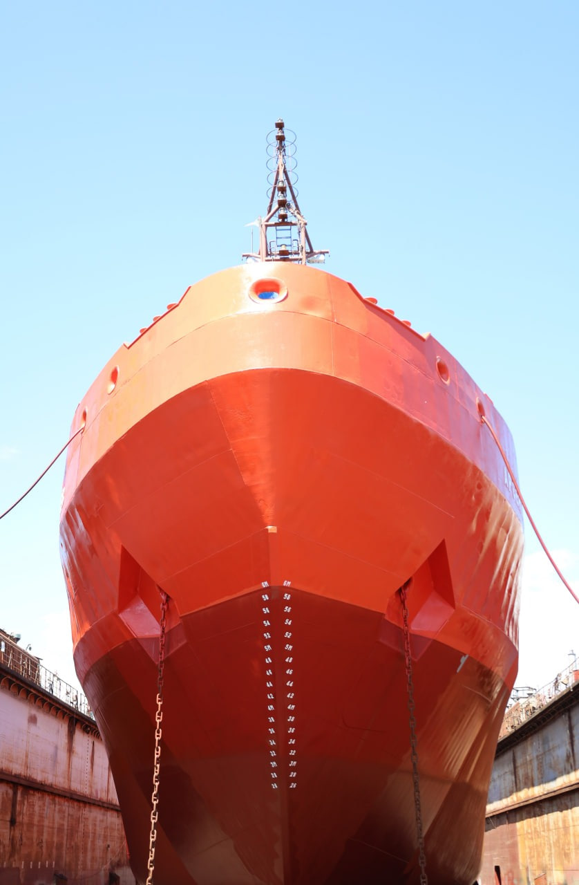 Ранее был завершен и этап окраски корпуса судна. На танкер нанесли надежное многослойное покрытие на эпоксидной основе, устойчивое к ледовой нагрузке и агрессивной морской среде. Теперь судно подготовлено для эксплуатации на следующие 5 лет для работы в условиях Крайнего Севера.