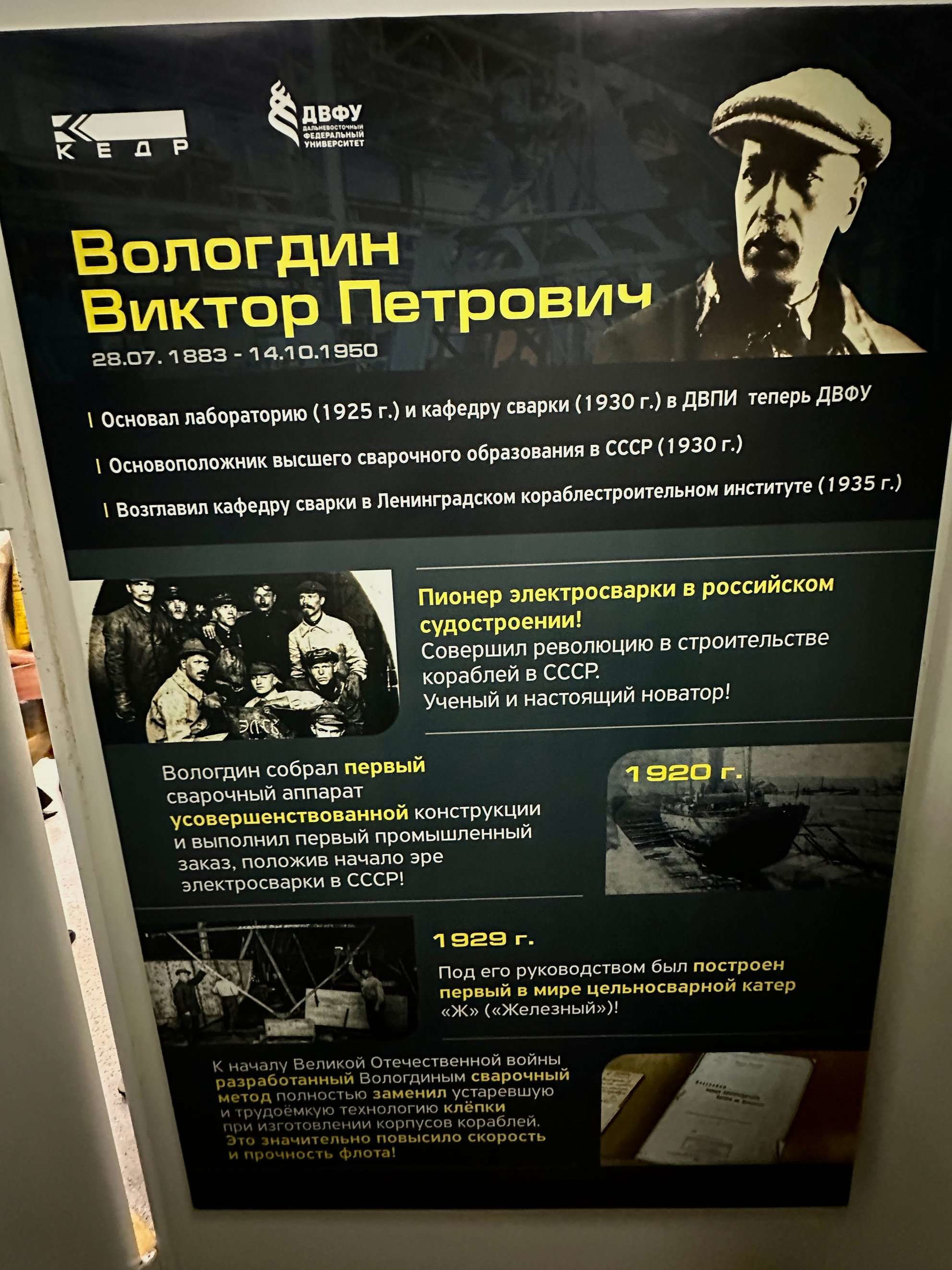 В лабораторном корпусе ДВФУ представителями компании «КЕДР» продемонстрировано в работе передовое сварочное оборудование собственного производства, а также программное обеспечение позволяющее повысить контроль качества сварочных работ и обеспечить сбор статистической информации о сварочном процессе. Продемонстрирована сварочная робототехника для конвейерной сборки и изготовления сложных деталей.