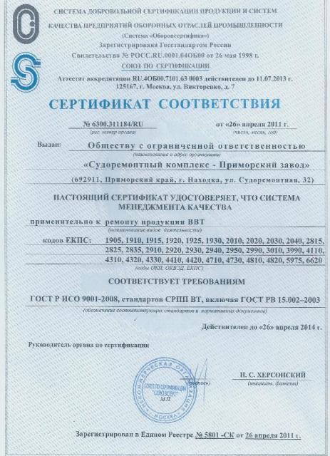 В декабре 2010 года «Судоремонтный комплекс-ПЗ» получил очередное Свидетельство «О соответствии предприятия требованиям Российского Морского Регистра судоходства» как предприятие, осуществляющее ремонт объектов технического наблюдения, а именно: