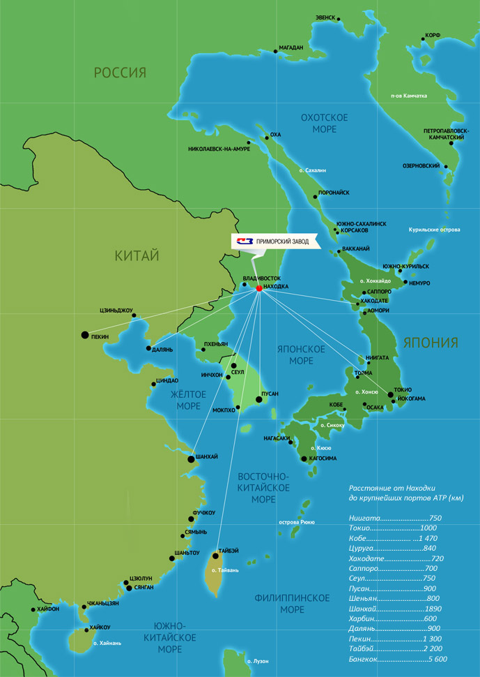 Находка – универсальный незамерзающий глубоководный порт Тихоокеанского побережья России, позволяющий осуществлять круглогодичную навигацию. Географические координаты Находки: 42°49′00″ с. ш. 132°53′00″ в. д. Находка - один из важнейших транспортных узлов Азиатско-Тихоокеанского региона (АТР), центр обработки грузовых потоков, идущих из АТР в Европу и в обратном направлении. Уникальность территории Находки обусловлена выгодным географическим положением: город расположен на побережье Японского моря в центре бурно развивающегося Азиатско-Тихоокеанского региона, примерно в 170 км к юго-востоку от Владивостока - столицы Приморского края. Это самый южный город на востоке России. Незамерзающая бухта, развитая транспортная инфраструктура, наличие мощной промышленной базы - все это обеспечивает динамичное развитие территории.