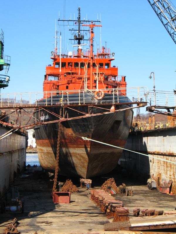 На судне выполнен сложный доковый ремонт на класс Регистра РФ. Ремонт предполагал изготовление специальных подъездных путей для демонтажа валопроводов. Были выполнены очистка и покраска судна, ремонт донно-забортной арматуры, винто-рулевого комплекса, наплавка швов, а также ремонт якорных цепей. Заказчиком выступил «Ливадийский ремонтно-судостроительный завод».