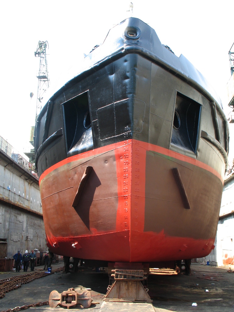 В плавдок №4 поднят теплоход «ВОСТОК» (судовладелец – ООО «Горняк-2», Сахалин). На судне запланирован большой объем ремонтных работ с предъявлением на класс Регистра РФ, в том числе – очистка, покраска корпуса, ремонт балластных танков, донно-забортной арматуры, якорных цепей, ревизия рулевого устройства.