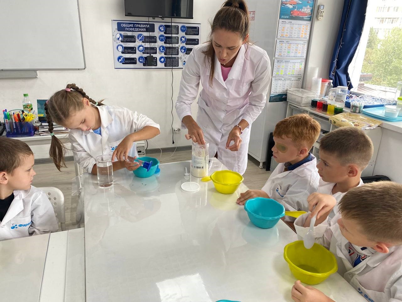 14 первоклассников примерили на себе форму химиков-экспериментаторов и провели удивительные опыты, которые продемонстрировали невероятные возможности науки.