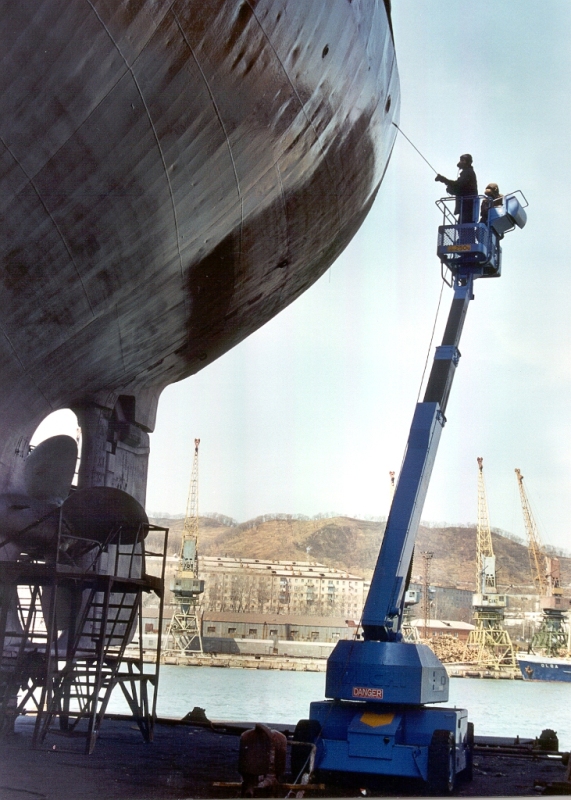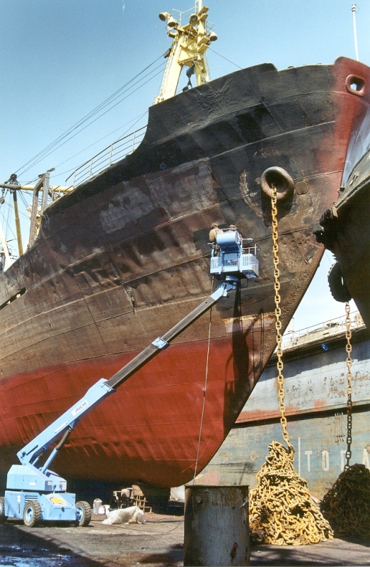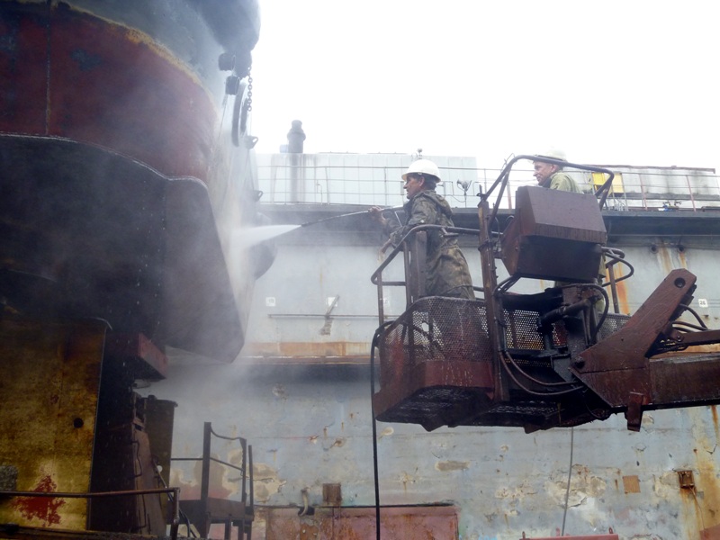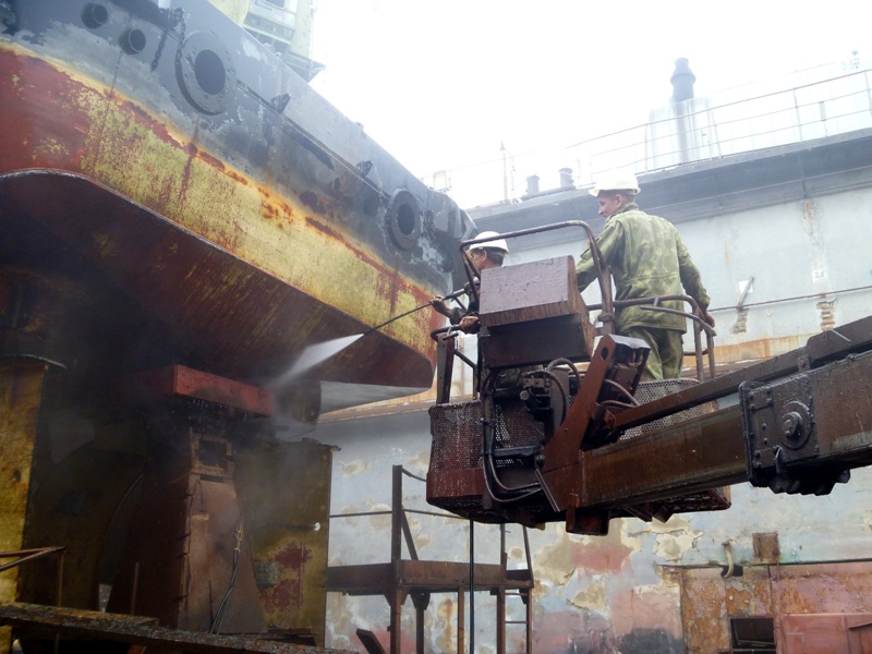 - пескоструйная очистка корпуса судна с помощью оборудования фирмы KIESS, позволяющая получать чистоту вплоть до SA-2.0; 2.5 и 3.0;